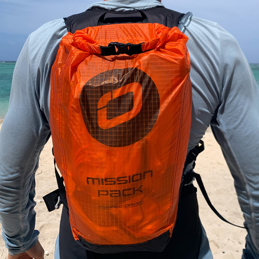 We also recommend the Mission Pack as a useful accessory for riders using inflatable wings on big missions. Should the wing deflate or suffer damage, having a back-up parawing on your back that could be used to help pull you to shore would be a welcome option.