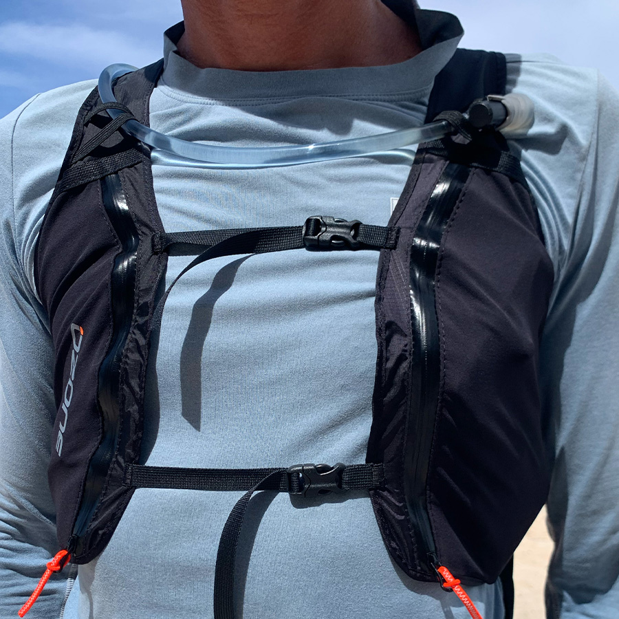 - Bungee loops on both shoulder straps hold the hydration bladder hose and mouth piece in a convenient position